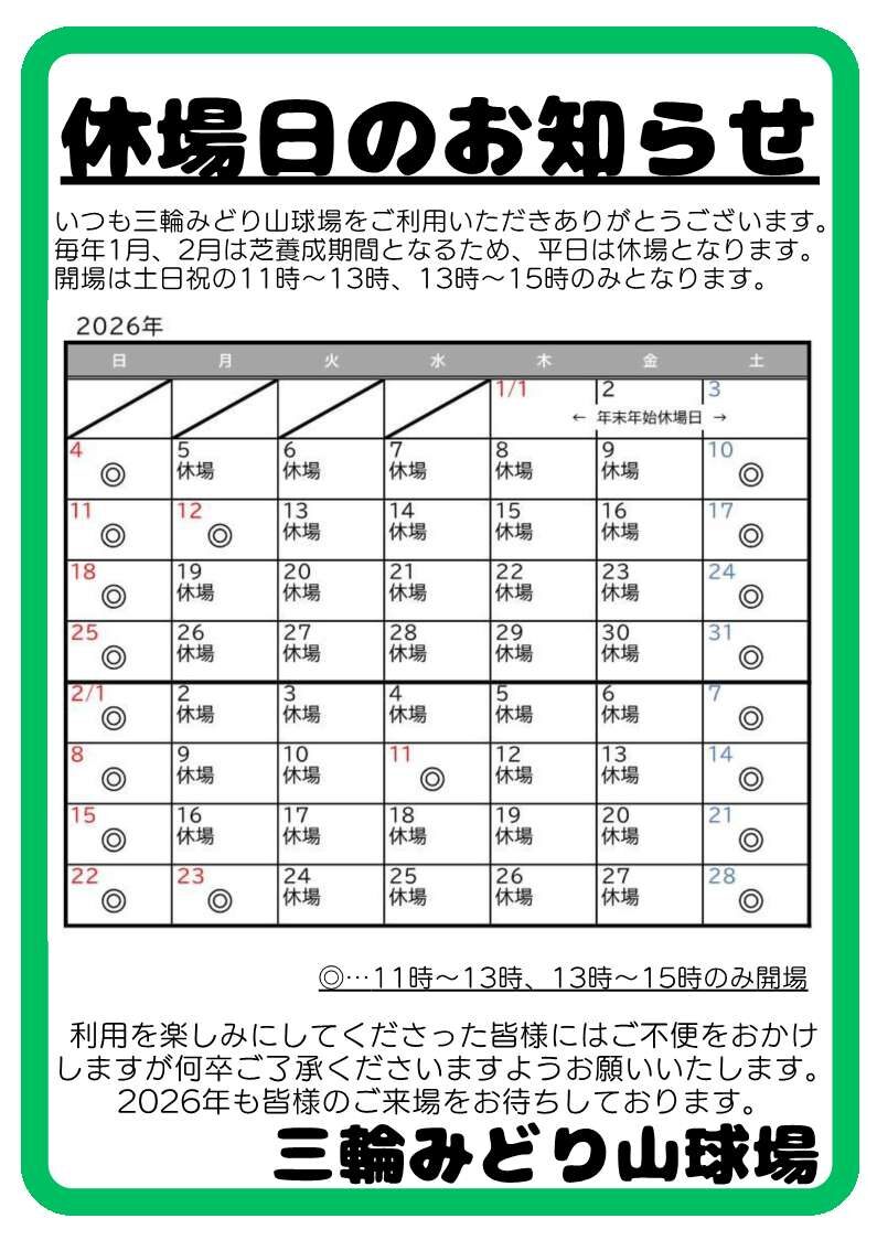 いつも三輪みどり山球場をご利用いただきありがとうございます。