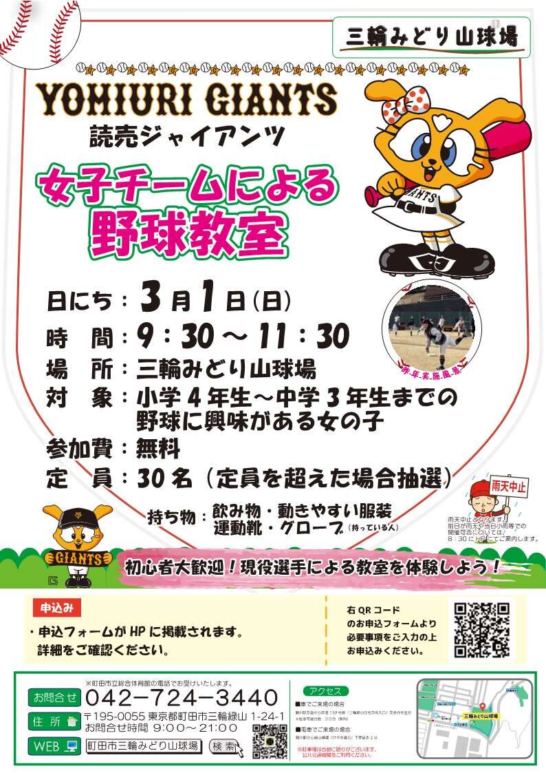 「読売ジャイアンツ女子チームによる野球教室」を開催します!